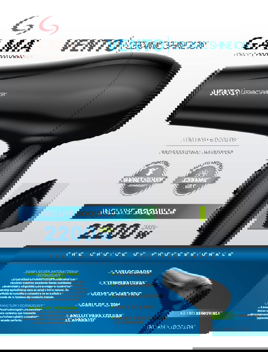 El Secador GA.MA Vento Ceramic Shine Ion resuelve uno de los problemas más comunes de la rutina diaria: secar el cabello rápido, sin dañarlo y con un acabado prolijo. Gracias a su potencia y tecnología de cuidado capilar, transforma el secado en un proceso eficiente, cómodo y seguro, ideal para quienes valoran resultados visibles sin perder tiempo.